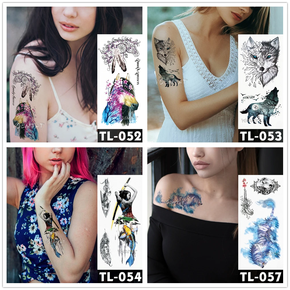 тату временные женские Переводятся с помощью воды, темные в черниль...