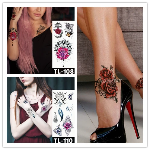 Поддельные Временные татуировки наклейки темные розы цветы татуиров...