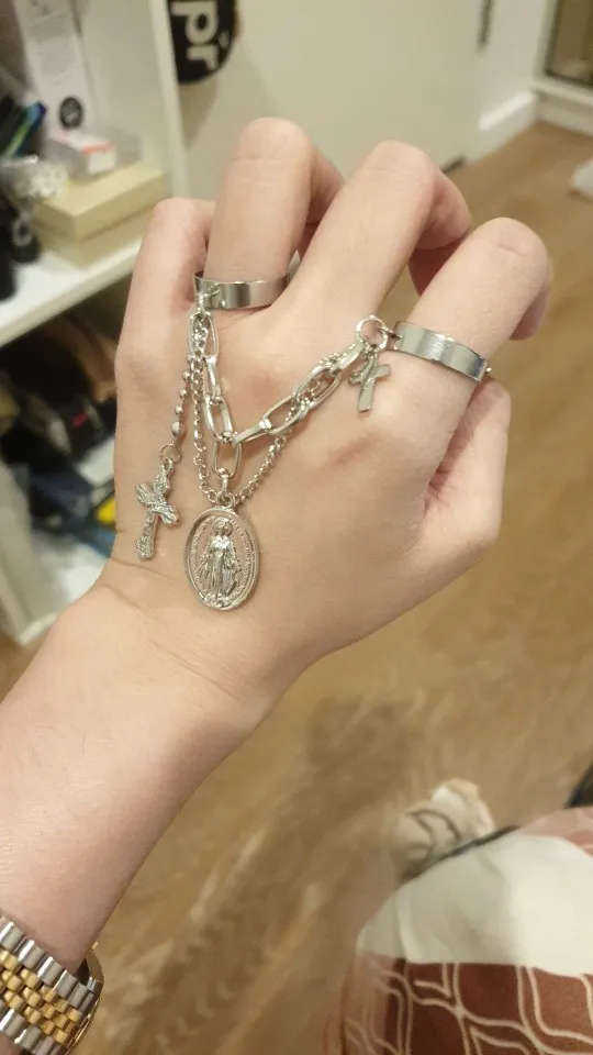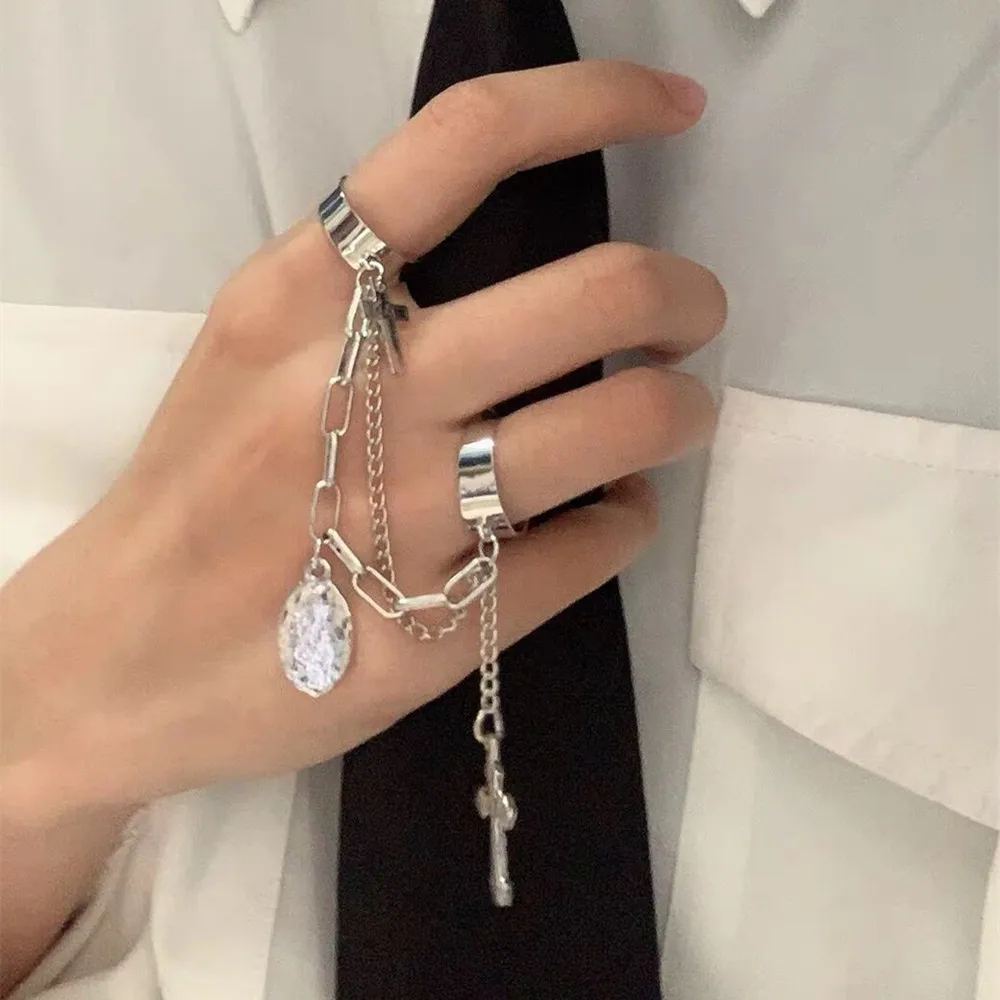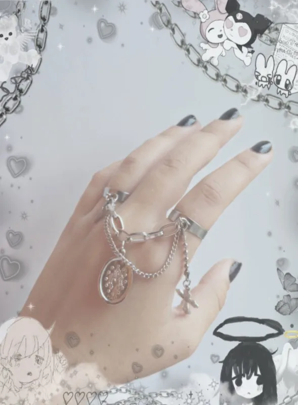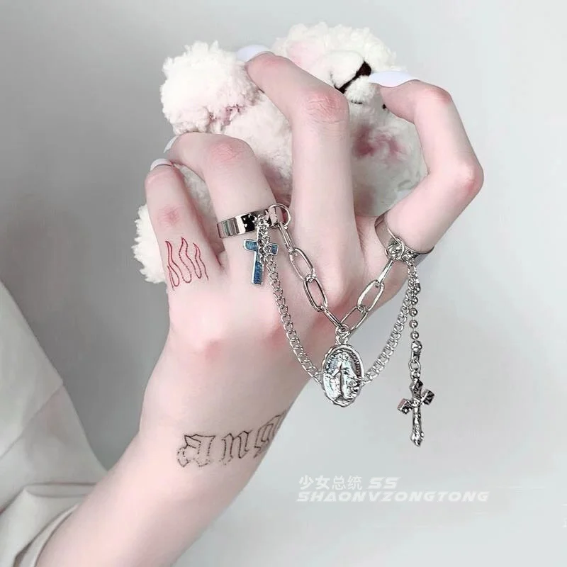 Женское сиамское кольцо FFLACELL, массивное кольцо в стиле ретро, панк, хип-хоп, крест из нержавеющей стали, 2020, с кисточками, подарок для девушек и женщин, цепочка с Иисусом