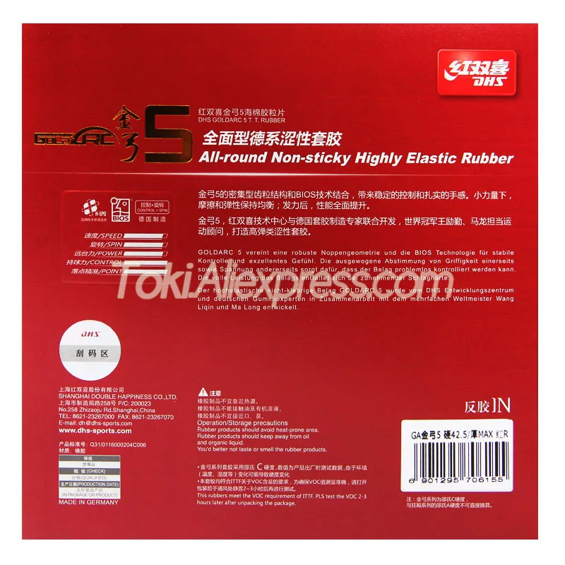 DHS GoldArc 5 GA5 резина для настольного тенниса (сделано в Германии) DHS GoldArc-5Золотая дуга 5 оригинальная DHS губка для пинг-понга