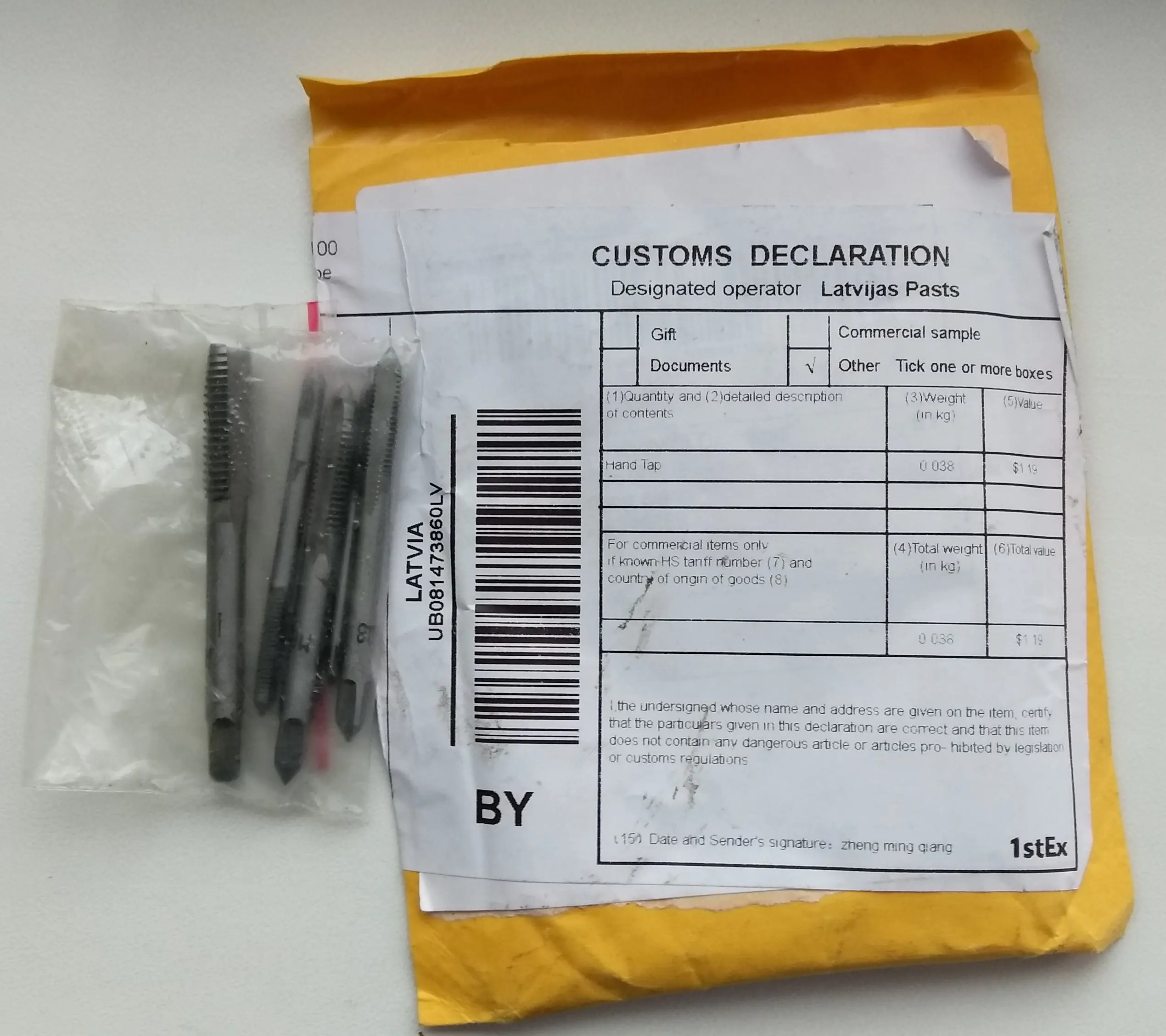 пакет в почтовый ящик кинули,трек не отслеживался 2 месяца доставка. резьба прослабленная получаецца,для неответственных работ сойдёт.