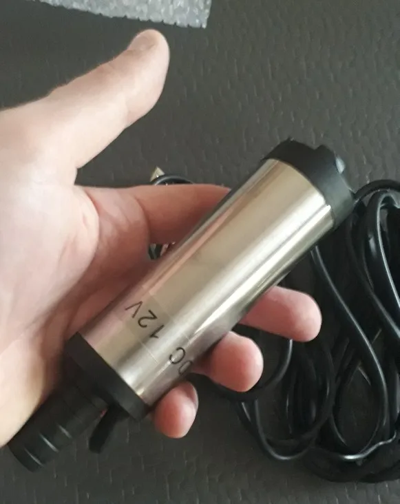 очень полезная штука, 20литров соляры перекачивает за пару минут. Пришло с прищепками на клемы, пришлось переделывать под прикуриватель