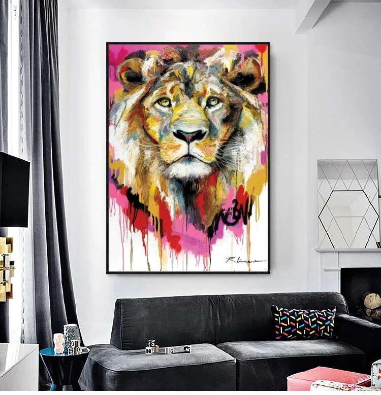 Акварельные Лев, картины на стену, животные, Масляные картины, настенные картины, плакаты и принты для домашнего декора гостиной