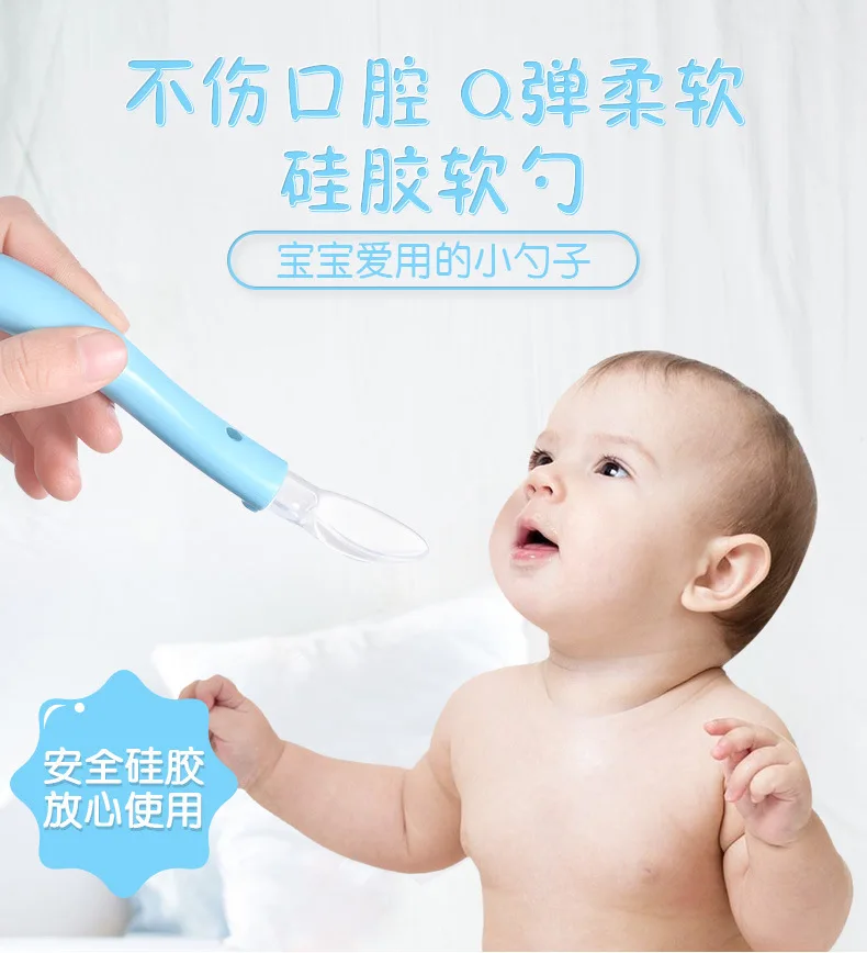 Детская силиконовая ложка с мягкой головкой, детская ложка для еды,...