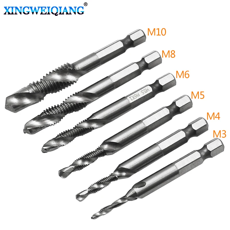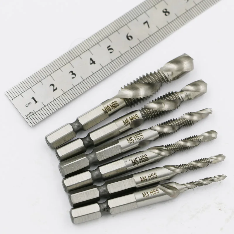 6 шт. M3-M10 композитный кран сверло Резьба спиральный винт 1/4 ''шестигранный HSS BI 112