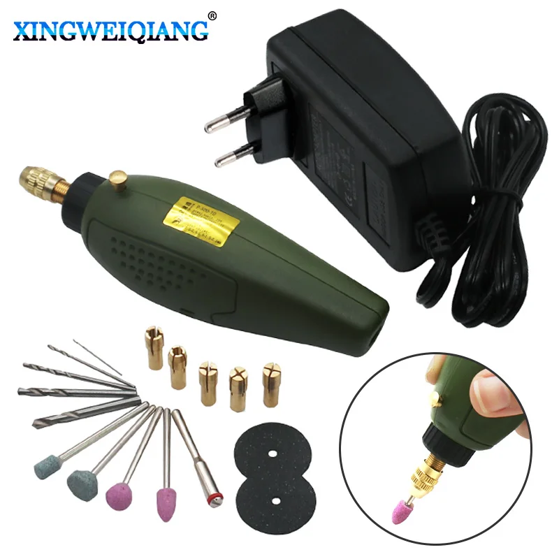 Электрическая мини-дрель XINGWEIANG, шлифовальный набор, 12 В постоянного тока, шлифовальный инструмент для фрезерования, полировки, сверления, гравировки, ЕС