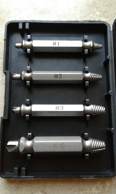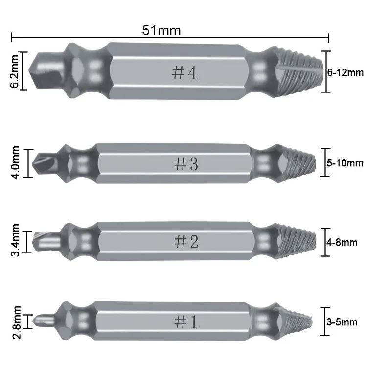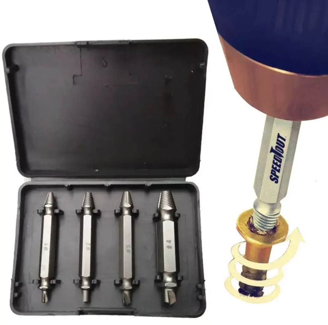 Двухсторонний экстрактор поврежденных винтов, инструмент для удаления сломанных болтов, шпилек, 4 шт., #1, #2, #3, #4, с чехлом