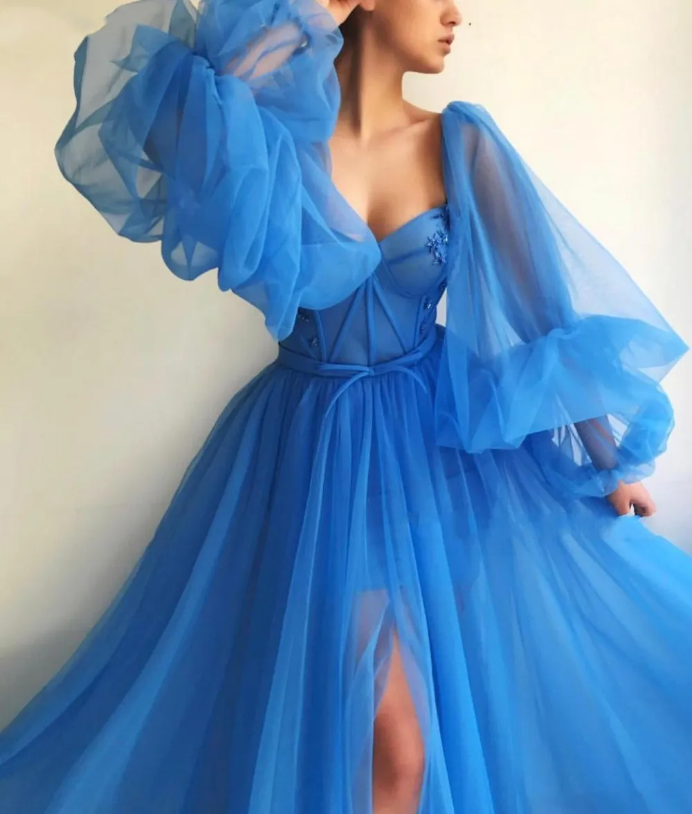 Романтические синие мусульманские Вечерние платья а-силуэта, женское длинное вечернее платье для выпускного вечера в стиле Дубая, Саудовской Аравии