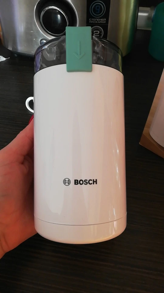 Читала много отзывов начёт данной модели, в целом пока довольна! Но единственный минус это то что на белом остаётся пыль от кофе, но бумажным полотенцем убирается на раз два. Максимальное количество зёрен хватает на два рожка