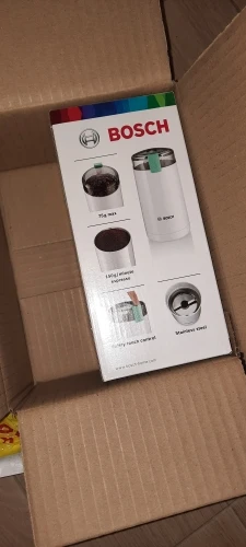 Доставка - 3 дня в почтовое отделение. Коробка помята, но не похоже, что в дороге - видимо, такую отправили. Внутри всё целое. Кофемолка работает.
