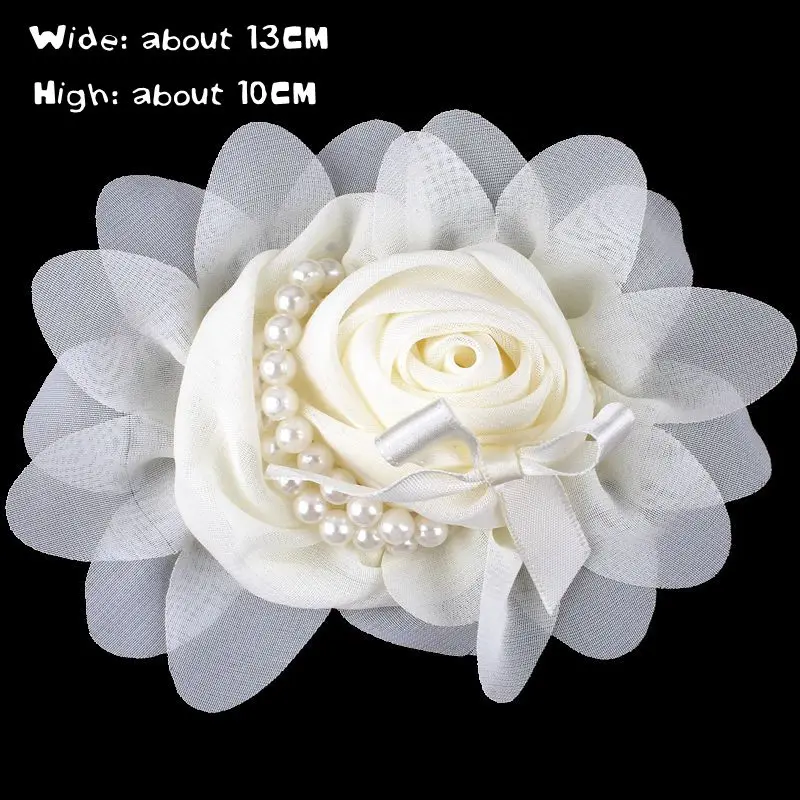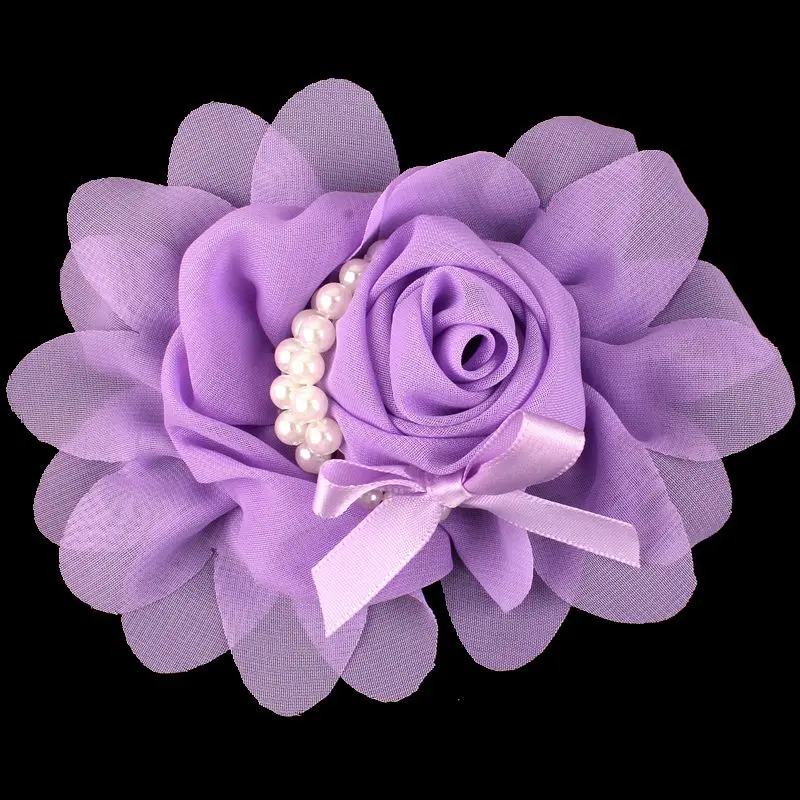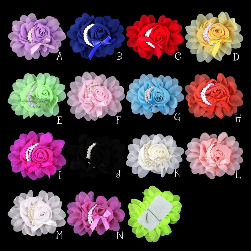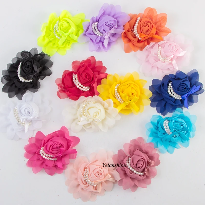 10 шт.лот 14 цветов заколки для волос искусственная Золотой рыбка бант шифоновая Розетка цветок с жемчугом однотонные тканевые цветы для повязки на голову