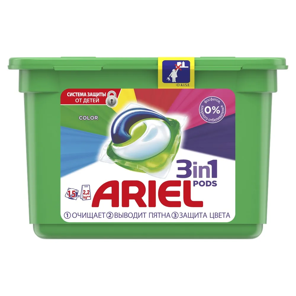 Первое средство для стирки с тремя раздельными компонентами, которые работают вместе. Они очищают, выводят пятна и придают тканям яркость. Компоненты находятся в отдельных секциях капсулы, что предотвращает их смешивание до начала стирки. Первое средство для стирки из 3х компонентов! Преимущества: - Очищает, выводит пятна и придает яркость - Непревзойденная эффективность: Ariel PODS 3в1 - лучшее жидкое средство для стирки от Ariel - Инновационная защитная быстрорастворимая пленка сохраняет компоненты отдельно друг от друга, что предотвращает их смешивание до начала стирки