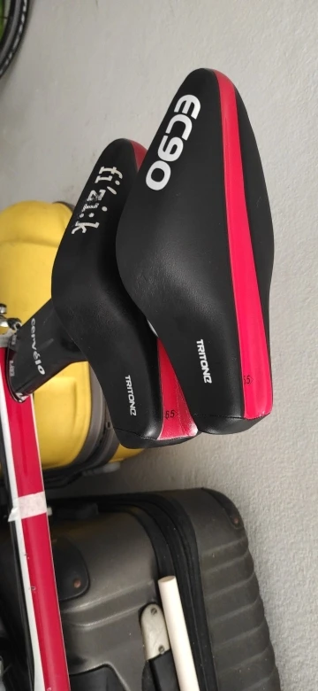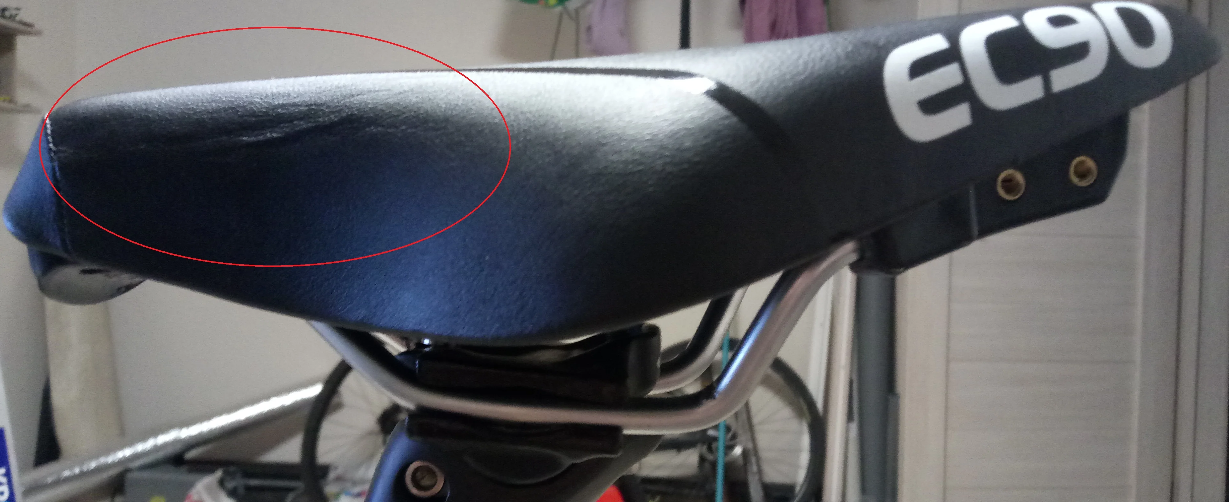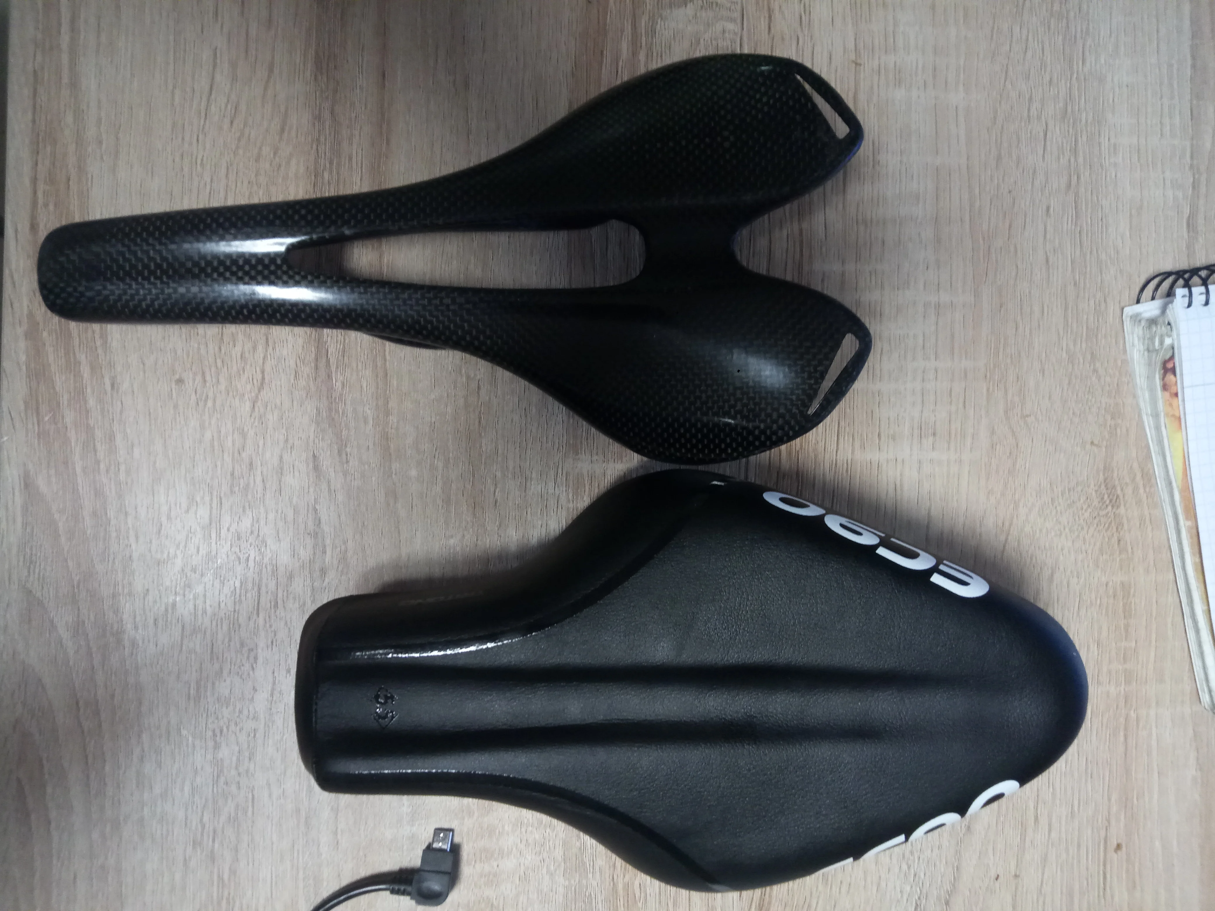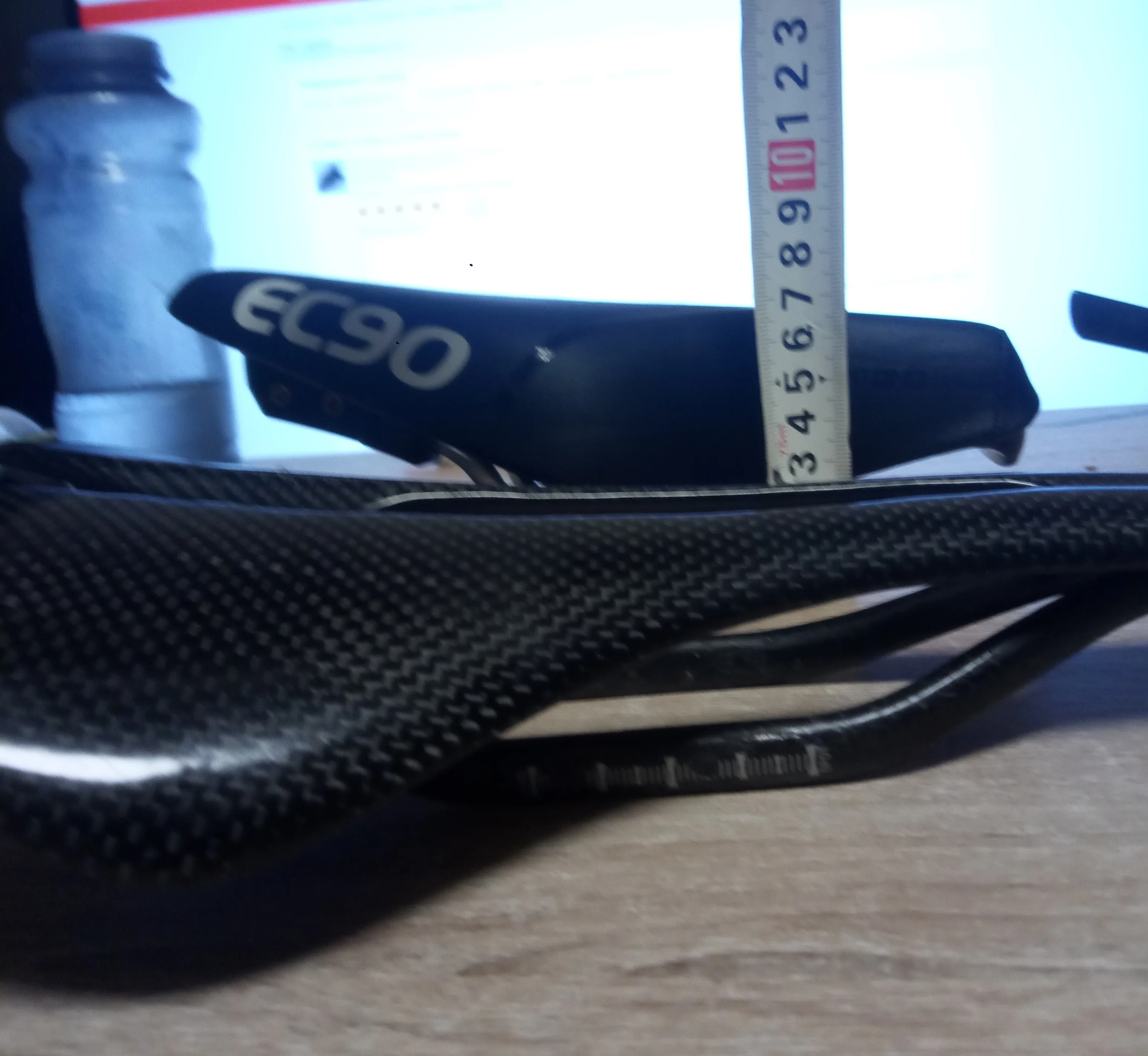 Вес седла 255 гр. После 40 минутной тренировке на седле образовались небольшие складки, отметил красным эллипсом на фото. После установки седла пришлось менять посадку, на 2 см ниже опустил подседельный штырь. Хоть и седло предназначено для аэропосадки комфортно сидеть и в обычном положении.