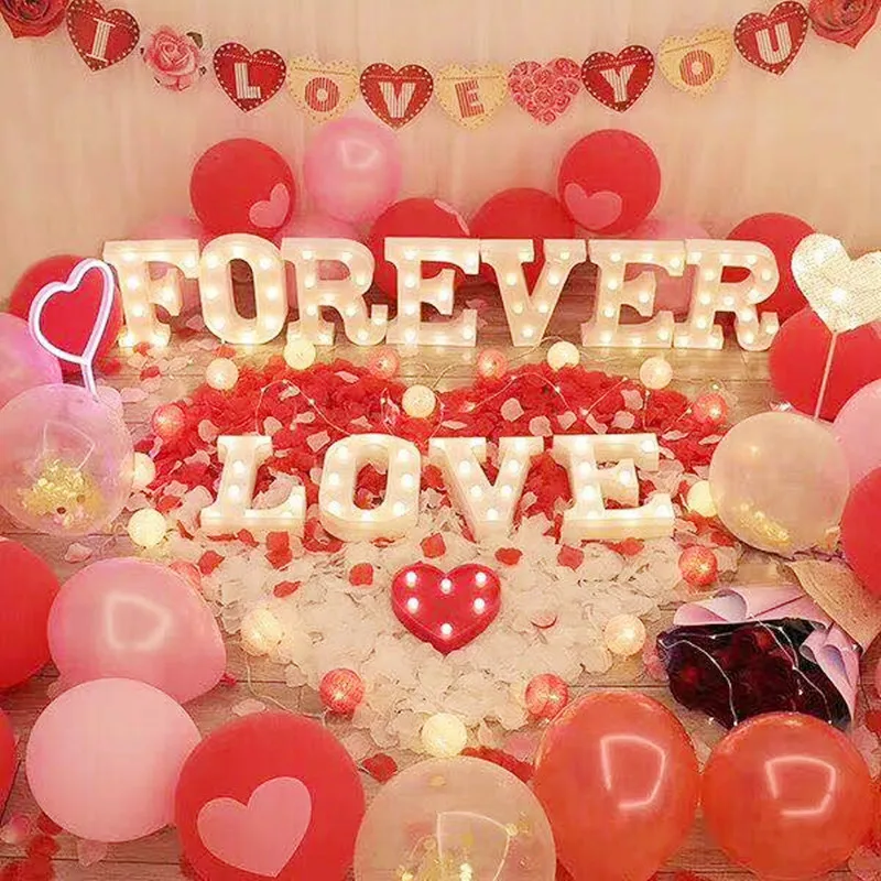 Светодиодный светильник * 7 шт. (MARRY ME) 33,33 см Смешанные цвета Макарон латакс баллон * 100 шт Баллон клея * 1 объем Надувное * 1 Завязывание узлом * 1 Красные листья цветка * 300 шт Розовый цветок листья * 600 шт 3 м 40 светодиодов Строка светильник * 1 "Любовь" 64*108 см * 1