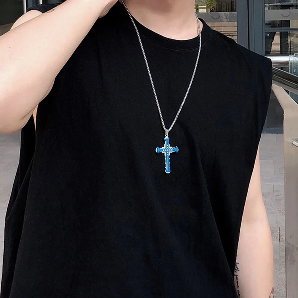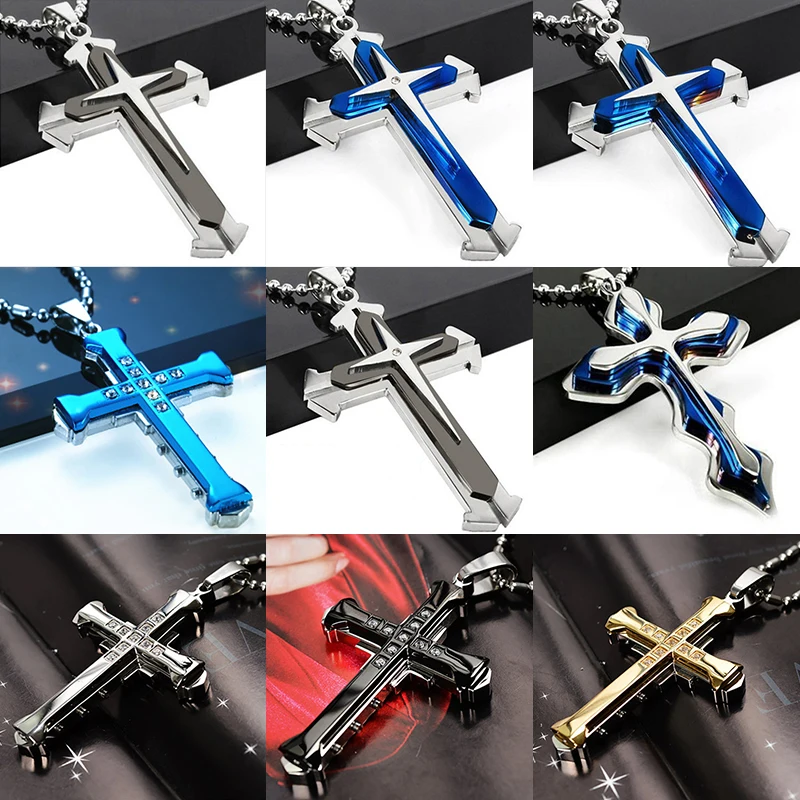 Новинка, хит продаж, мужское ожерелье с подвеской в виде Креста Иисуса, золотого, Серебряного и черного цветов, модное ювелирное изделие на Рождество