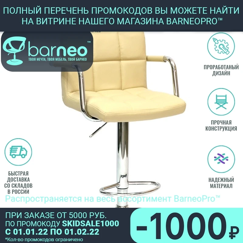 Барный стул Barneo N-69 94246 Kruger Arm бежевый интерьерный дизайнерский поворотный сидение эко-кожа основание хром