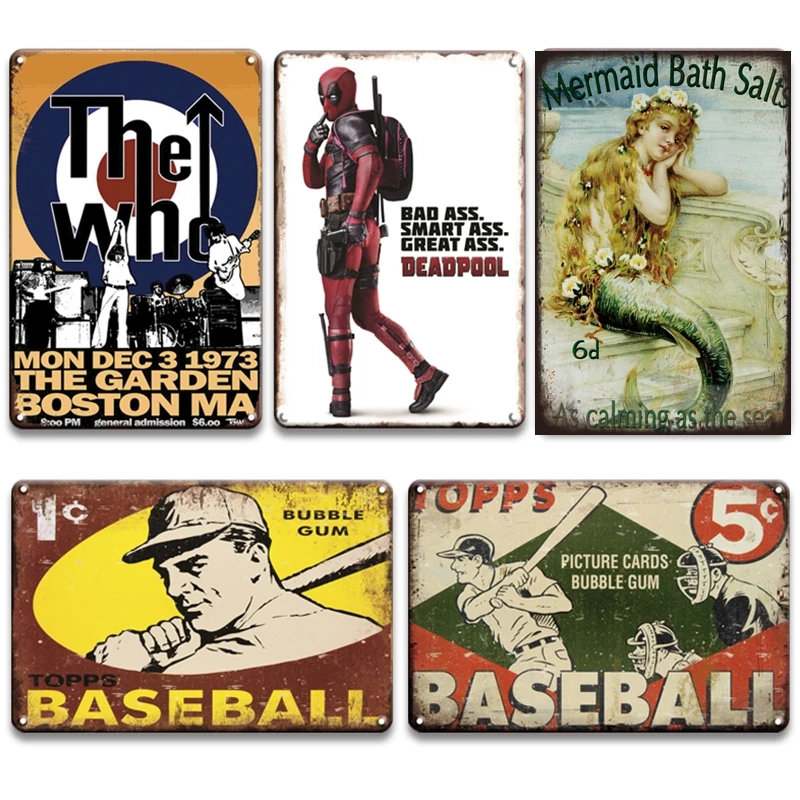Потертый шикарный плакат со сценами из фильмов, металлический знак,...
