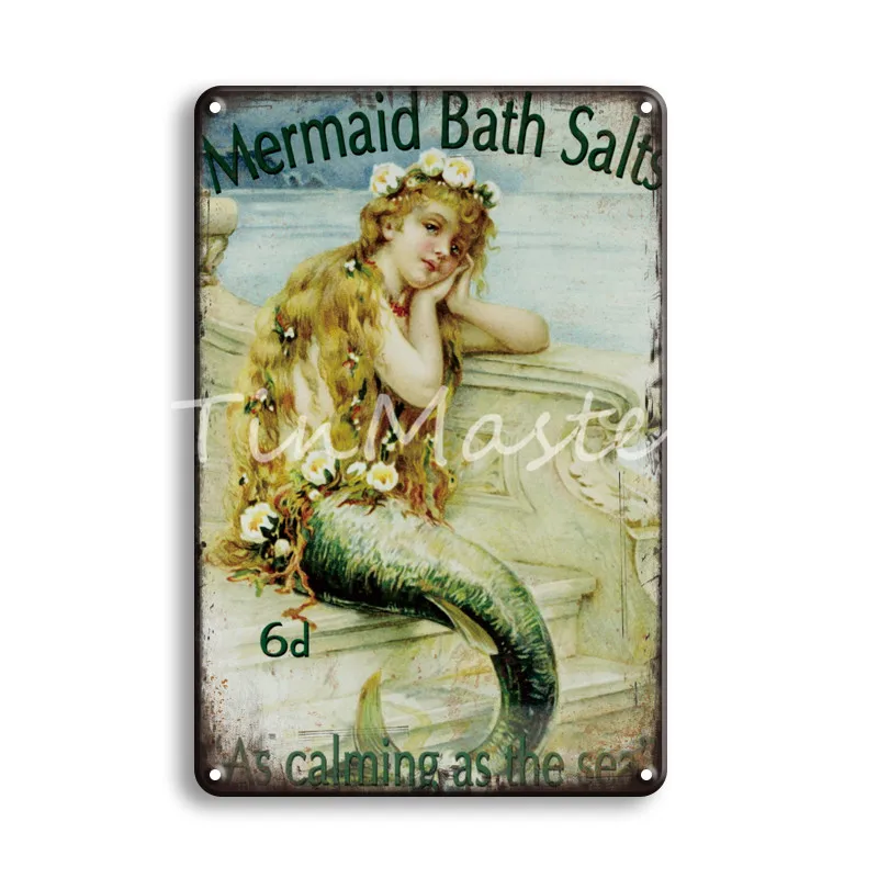Русалка, ванная комната, печатные винтажные дневные знаки, Забавный...