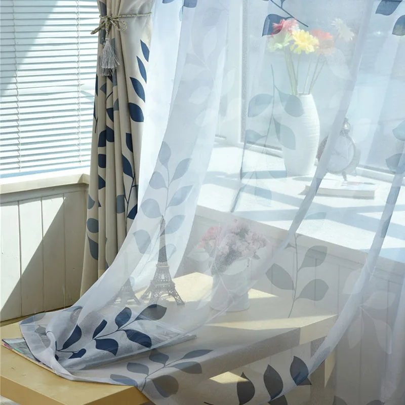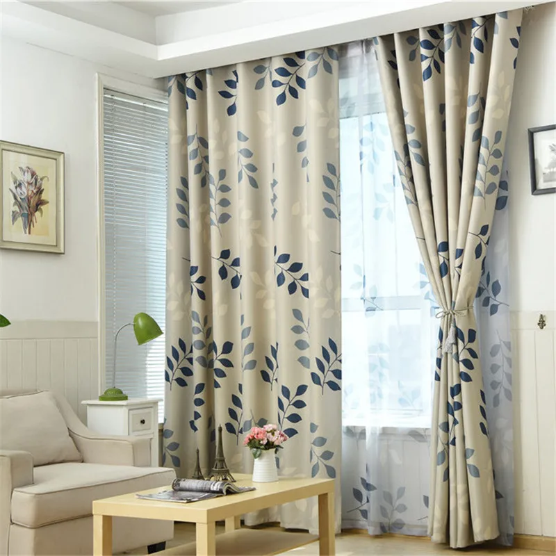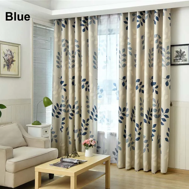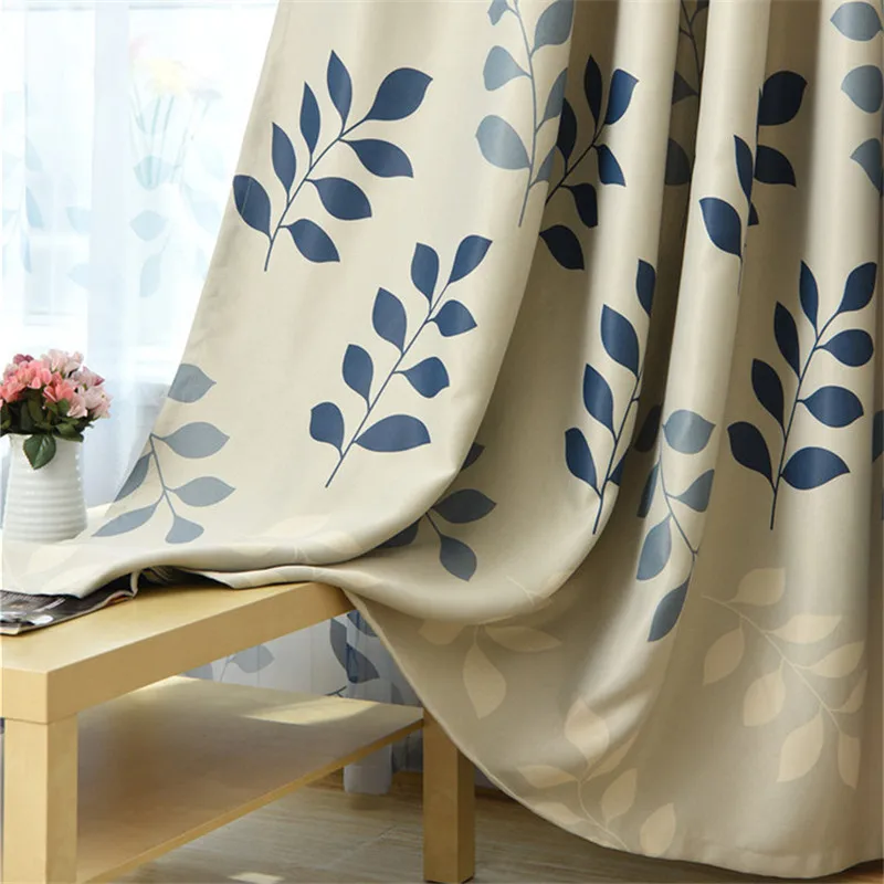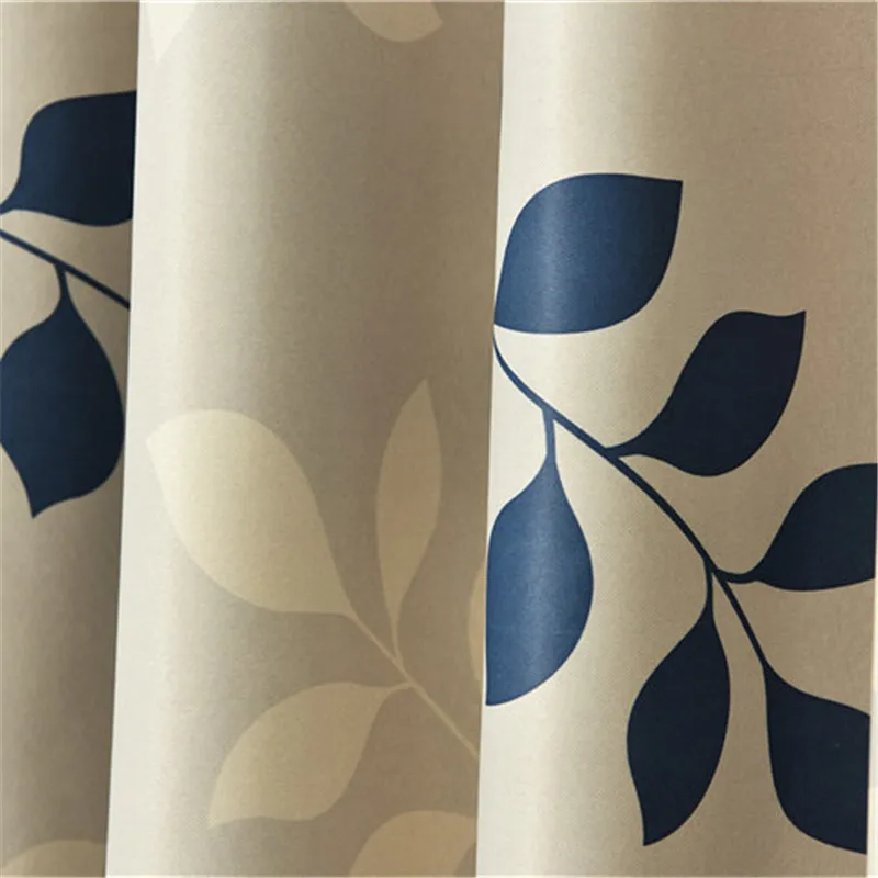 Затемняющие оконные шторы с синими листьями для спальни, гостиной, длинные оконные шторы с зелеными листьями, украшение для комнаты