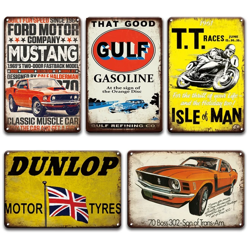 Автомобиль плакат живопись металлическая пластина знак винтаж мотоциклы Оловянная вывеска гараж домашний декор таблички Ретро Художественная металлическая живопись наклейки