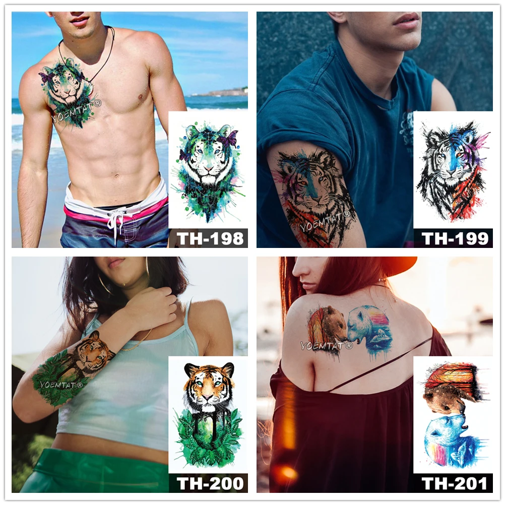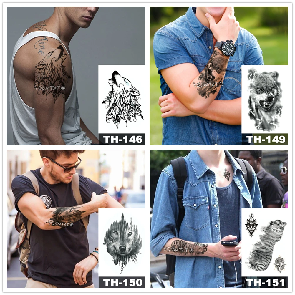 1 лист, имитация татуировки с животными, волк, тигр, лиса, крутой в...
