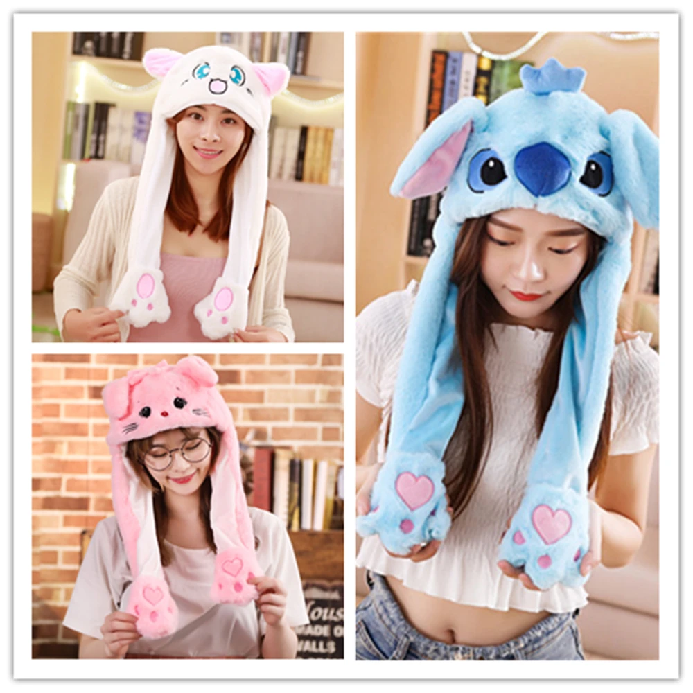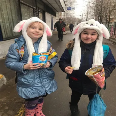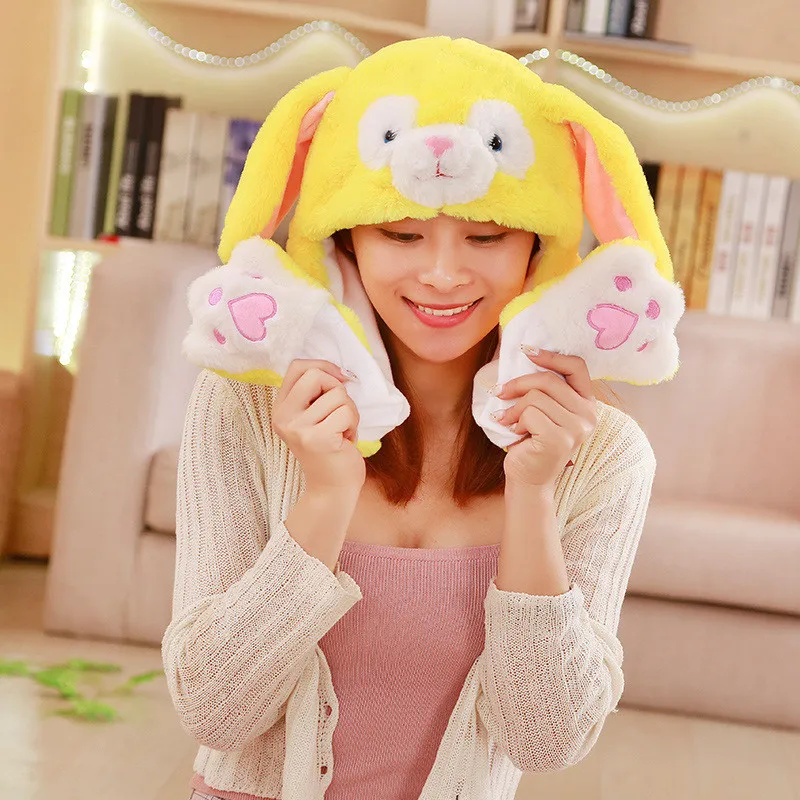 Кролик шапка движущиеся уши Милая мультяшная игрушка шапка подушка безопасности кавайная смешная детская плюшевая игрушка подарок на день рождения шапка для девочек