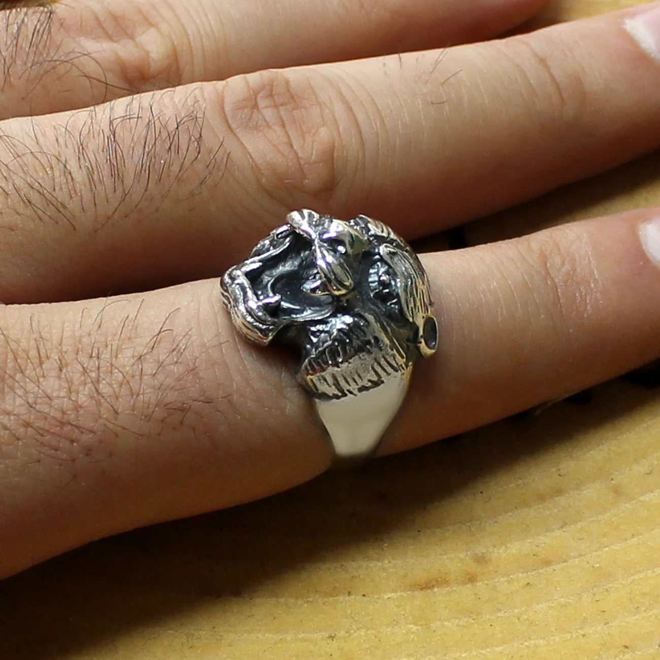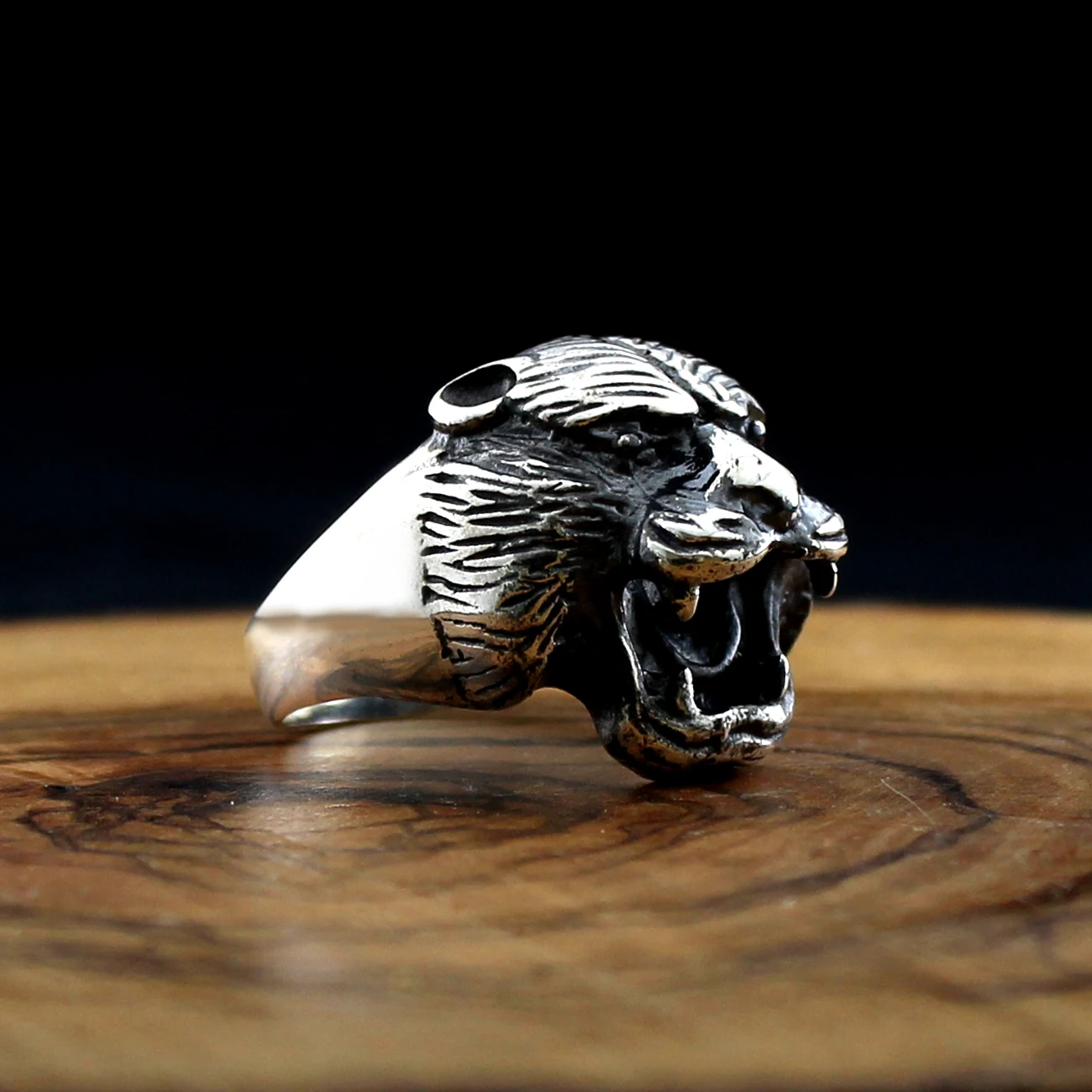 Настоящее серебро 925 пробы пантера ретро кольцо для мужчин женщин высокое качество ручной работы панк Aqeq оникс камень ювелирные изделия мода старинные подарочный аксессуар