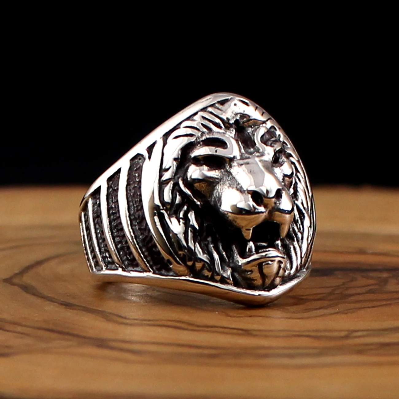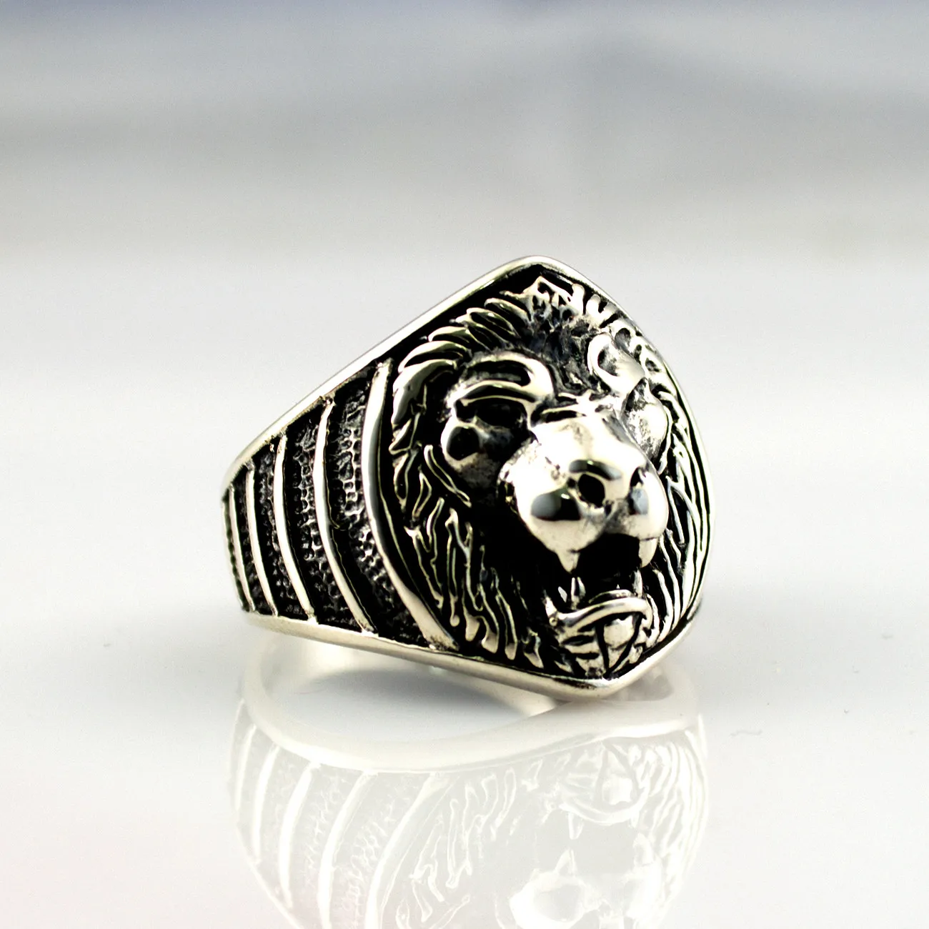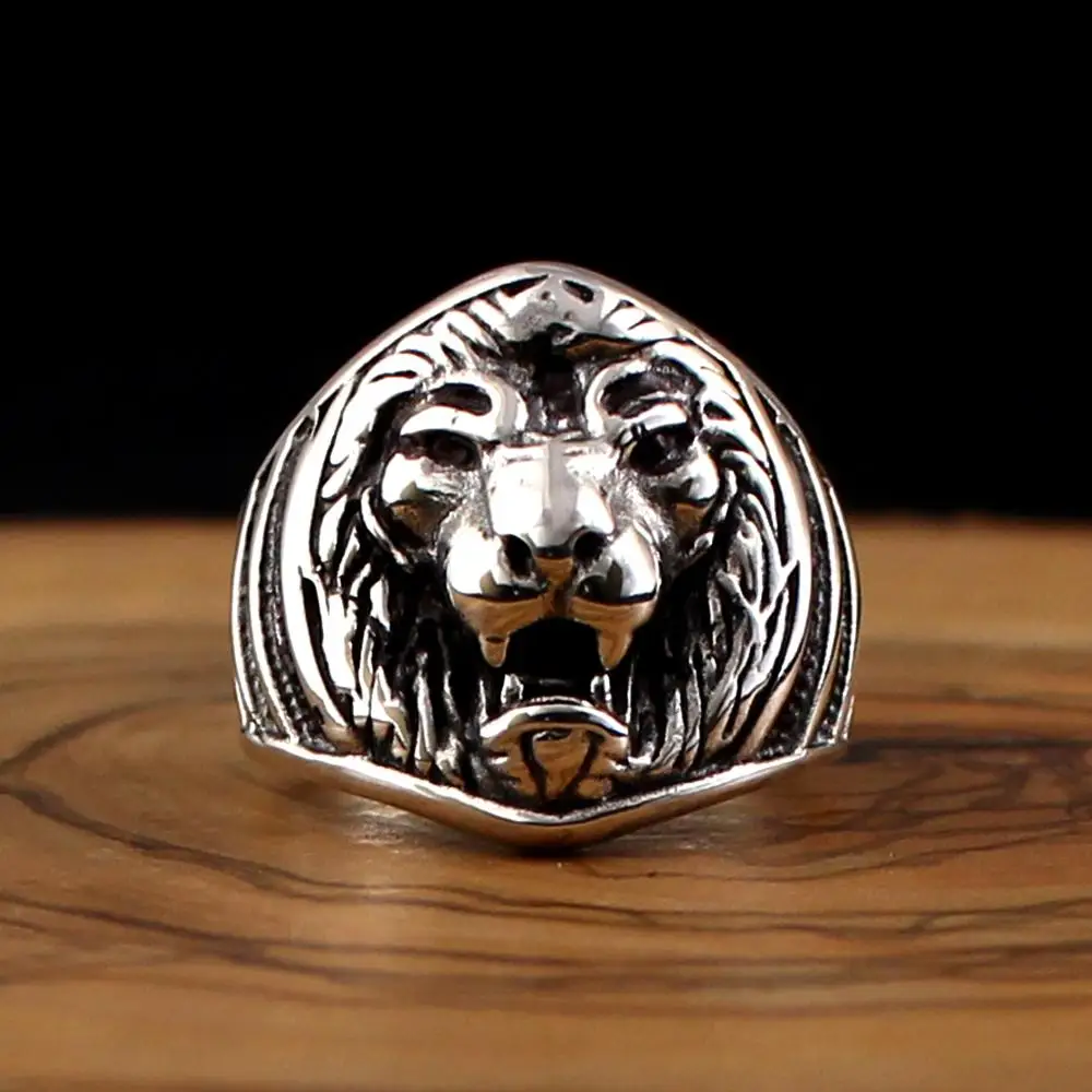 Турецкий Стиль Настоящий Чистый Стерлингового Серебра 925 Лев Лицо Кольцо Для Мужчин Женщин Ручной Работы Высококачественные Ювелирные Изделия Панк Ретро Подарок Унисекс Мода Винтаж Аксессуар