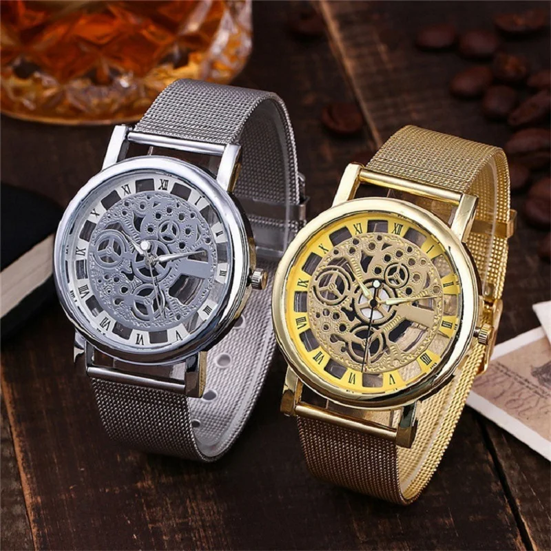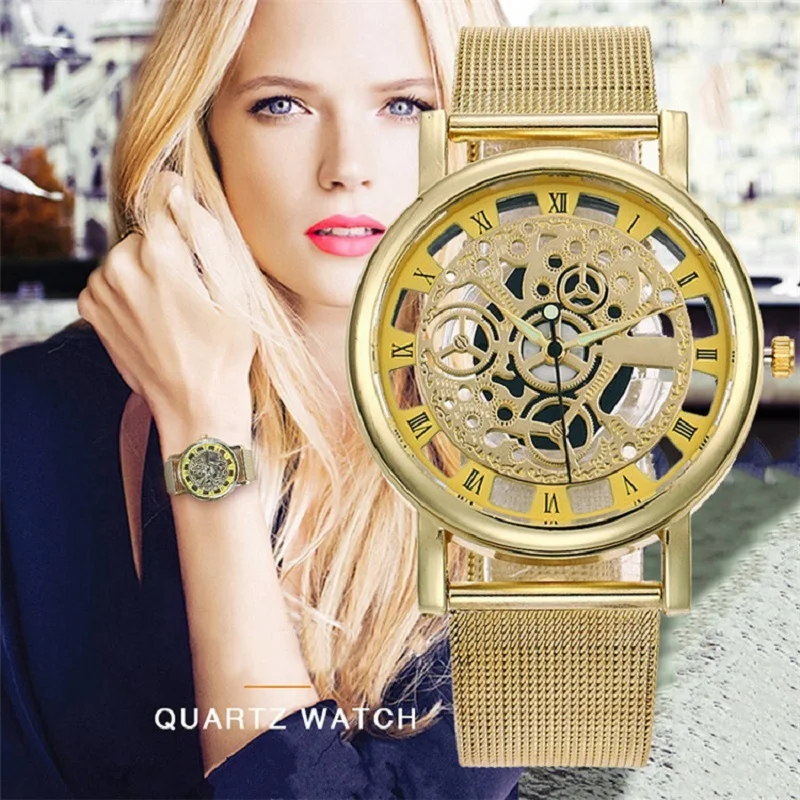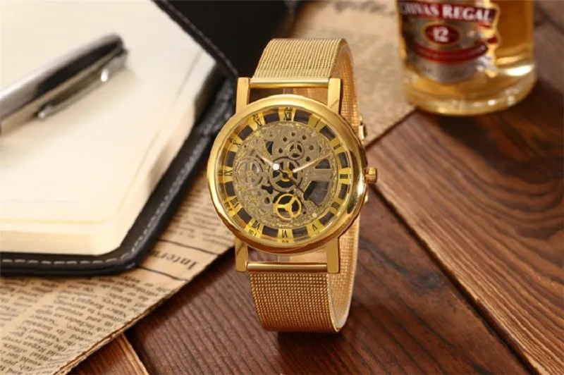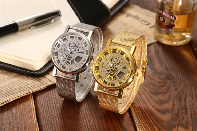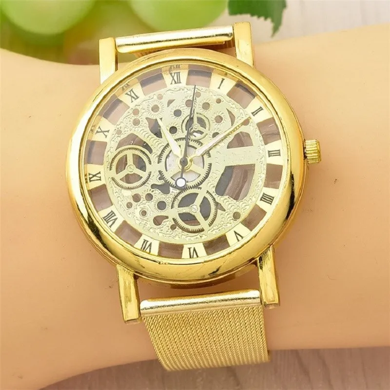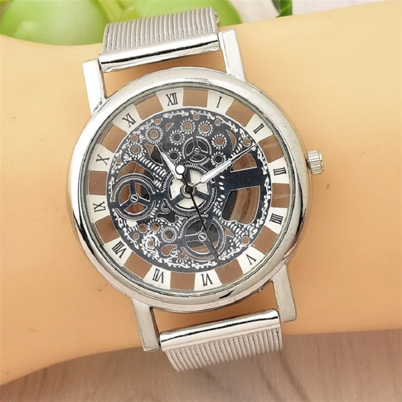 2021 модные часы серебристо-золотистые Роскошные полые стальные час...