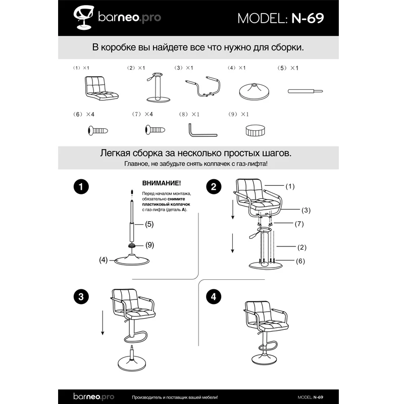 Барный стул N-69 барный стул со спинкой Barneo Kruger Arm черный барный стул на кухню 94375 барный стул скандинавский барный стул высокий барный стул для кухни барный стул домашний kitchen stool Loft bar kitchen chair