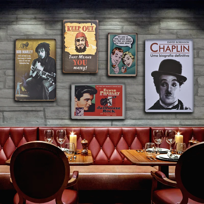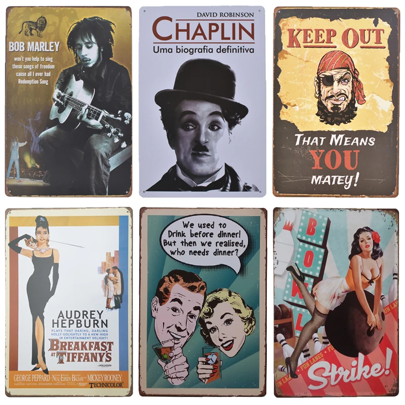 Потертый шикарный плакат со сценами из фильмов, металлический знак,...