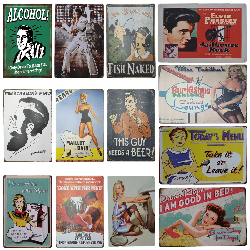 Винтажный пикантный постер для девушки душа, металлическая живопись...