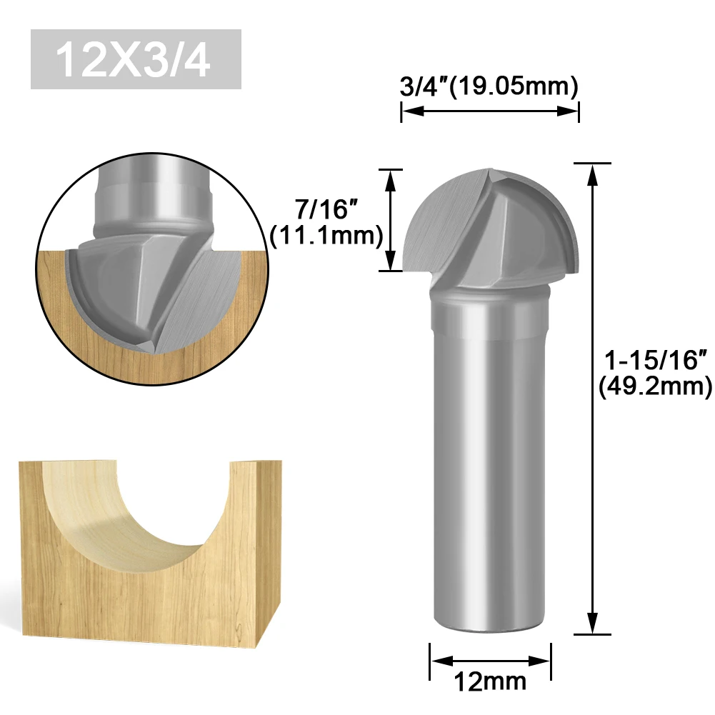 Фреза с хвостовиком 12 мм, радиус 14, 1 шт.