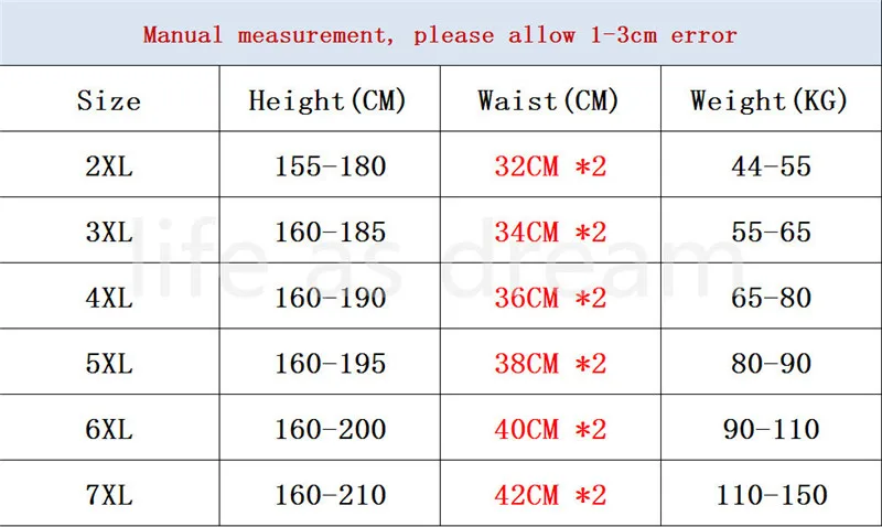 SizeXXL XXXL XXXXL 5XL 6XL 7XL