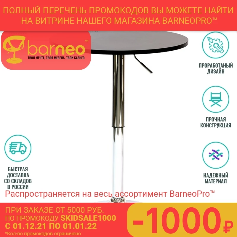 Интерьерный дизайнерский барный стол Barneo Т-1 94916 черный с изме...