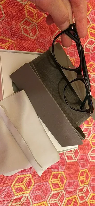 Заказ пришел быстро, с момента заказа до получения - 14 суток. Упаковано качественно и надежно. Комплектность полная, согласно указанной производителем (очки + инструкция, 2 пары дужек, 2 насадки для переносицы, чехол для хранения, салфетка). Чехол для хранения имеет неприятный запах. Очки легкие, удобные, выглядят стильно. По ощущениям, глаза устают меньше. Но работаю в них только два дня, пока трудно оценить объективно.