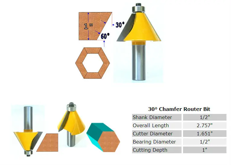 Фаска и фаска 30 градусов, хвостовик фреза для отделки кромки-12 дюйма, фрезы для деревообработки, 1 шт.
