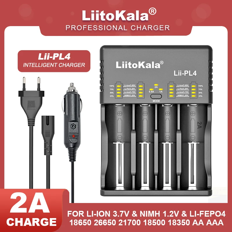 Lii-PL4-это новое многофункциональное умное зарядное устройство с 4 слотами, запущенное LiitoKala. Низкая цена, в то время как четыре типа батарей могут быть применены (Li-ion 4,2 V/4,35 V Ni-MH 1,2 V Li-Fe 3,6 V), и различные размеры батарей.