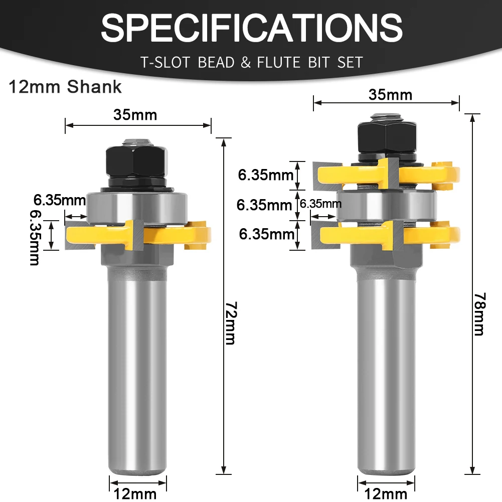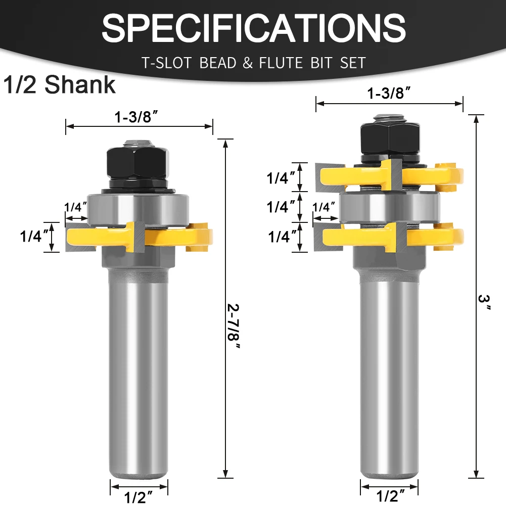 Комплект Т-образных фрез с хвостовиком 14, 2 шт., для работ по дереву