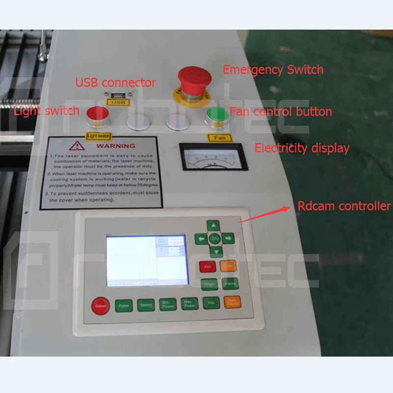 7.Ruida или Leetro контроллерИнтерфейс USB, поддержка работы онлайн/в автономном режиме, система на английском языке, регулируемая скорость и мощность резки.