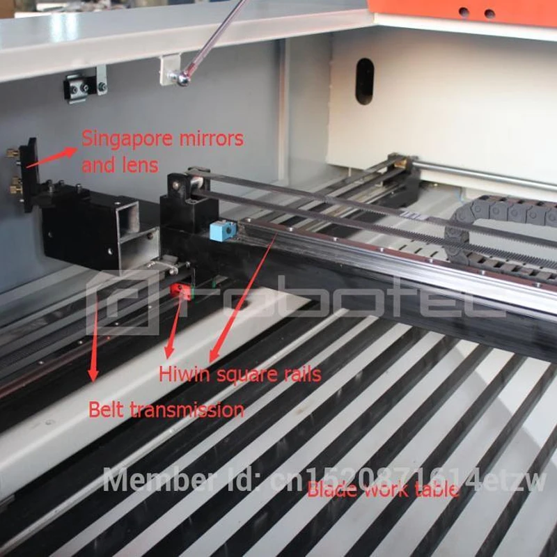 4. Стеклянная герметичная лазерная трубка, китайский известный бренд (EFR, Reci), Хорошая стабилизация режима луча, время работыБолее 8500-10000 рабочих часов.