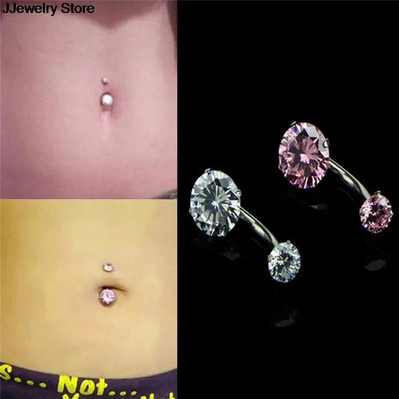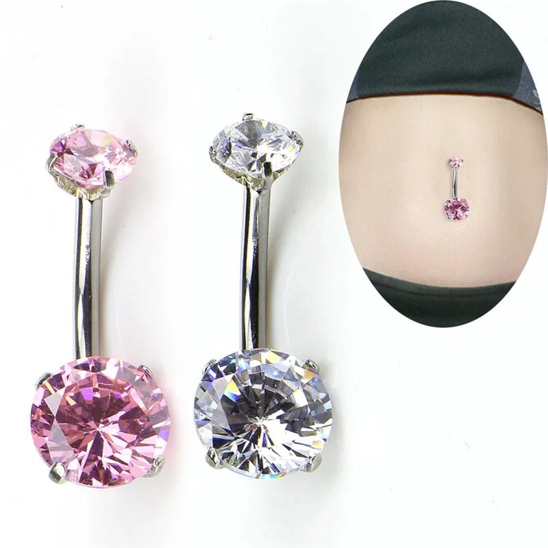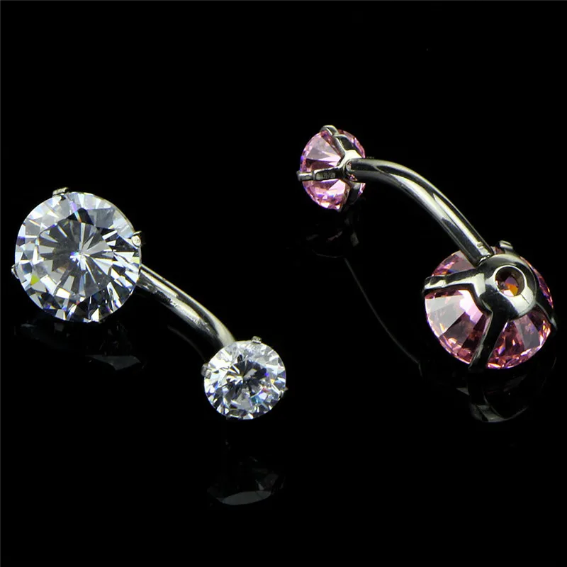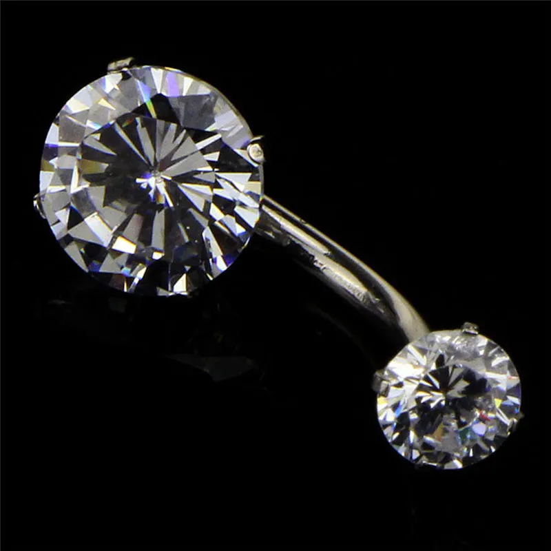 Кольцо для пупка с двойным фианитом, внутренняя резьба, Стандартная настройка зубцов из нержавеющей стали