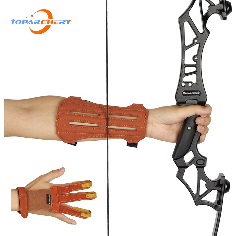 3 пальца наконечник защиты Стрельба Из Лука Защитный перчатки рука гвардии лошадь кожа палец Tab протектор для рекурсивного Longbow Охота стрельба