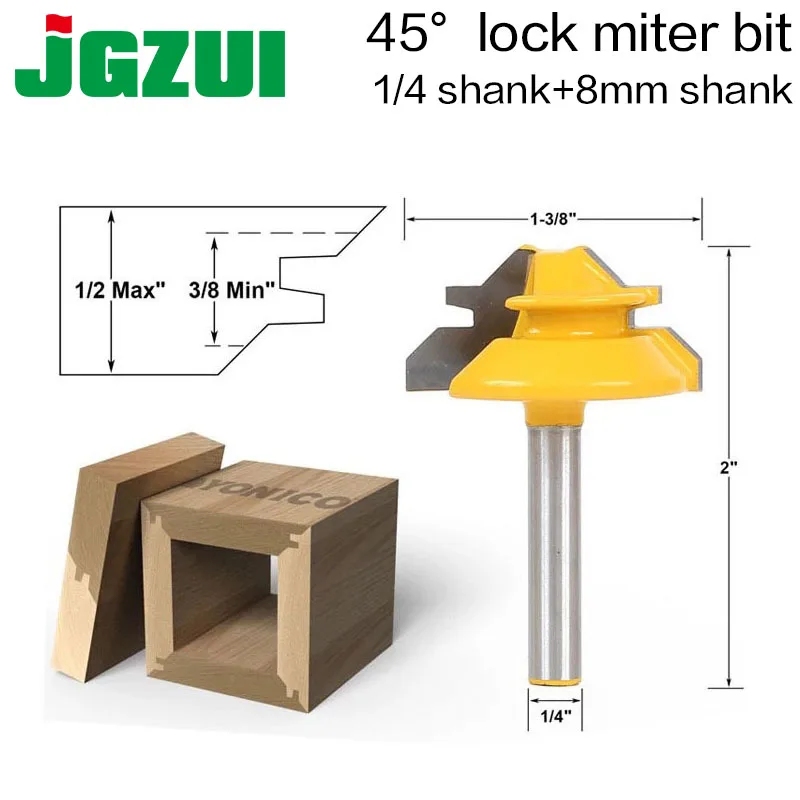 Фреза для контурной обработки, 1 шт., с небольшим замком, с защитой от отдачи, 45 градусов, 12 дюйма, хвостовик 14 дюйма, резак для шипов WoodworkingTools-RCT15291