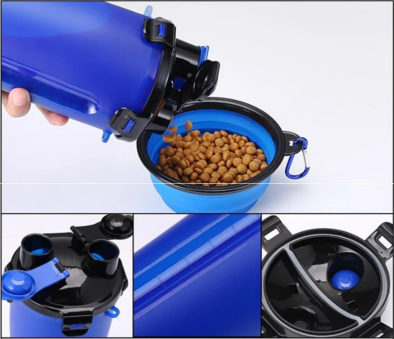 Дорожная бутылка для воды 2 в 1 для домашних животных, складная миска для кормления собак, чашка для питья, контейнер для еды, силиконовая портативная, кормушка для кошек и собак