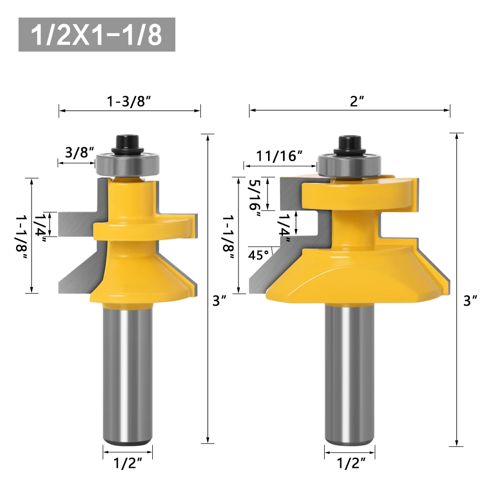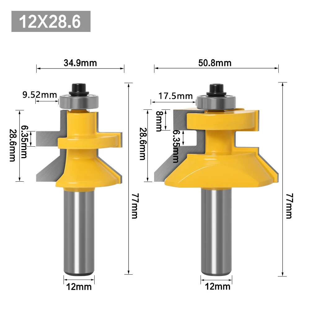 Набор фрез с V-образным пазом, 2 шт., 12 дюйма, 12 мм, 8 мм, с шарикоподшипниками премиум-класса, для деревообработки