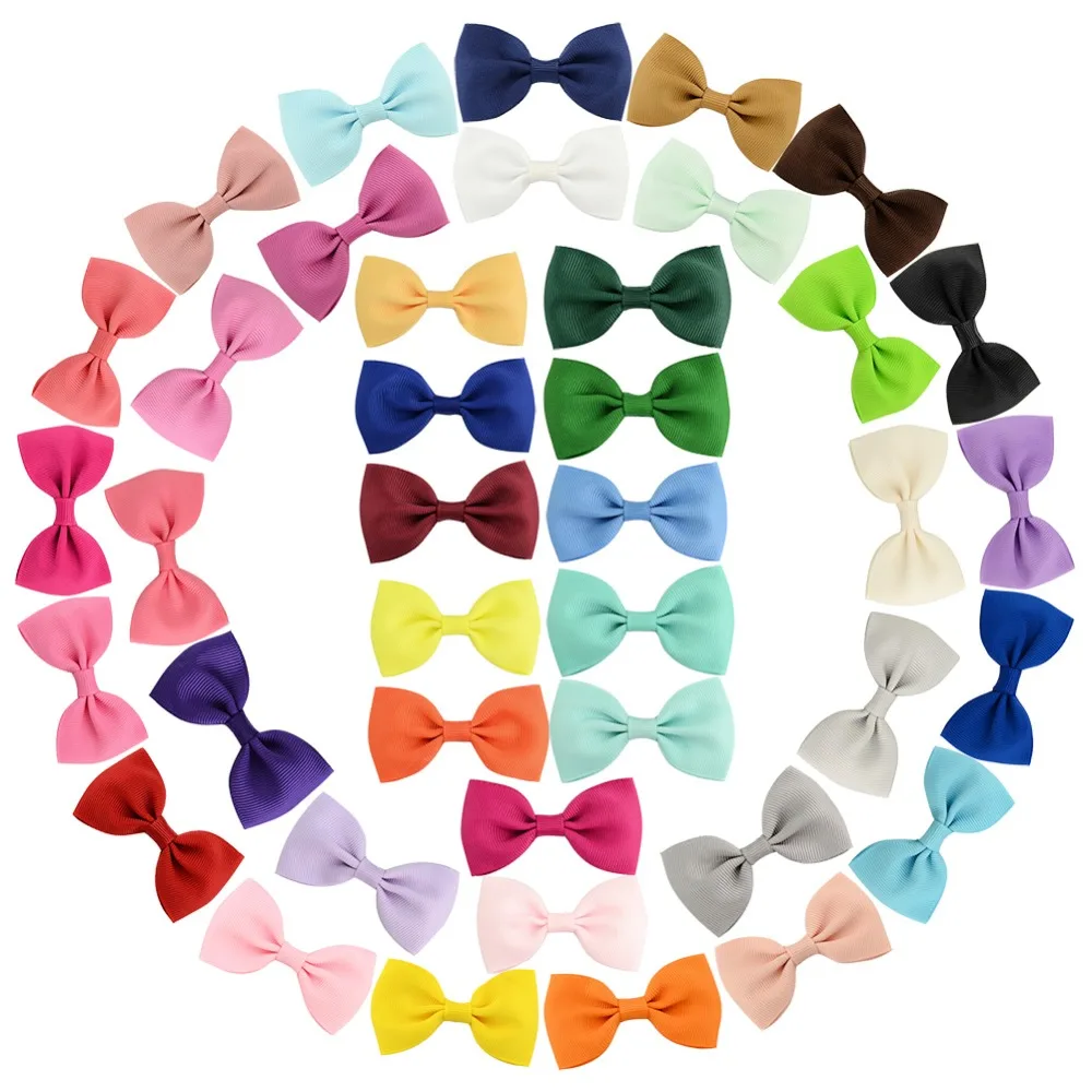 Детские маленькие разноцветные ручки для волос с бантом, милые однотонные мини-резинки для волос, безопасные зажимы для волос, аксессуары для волос, 40 цветов, 2040 шт., 643