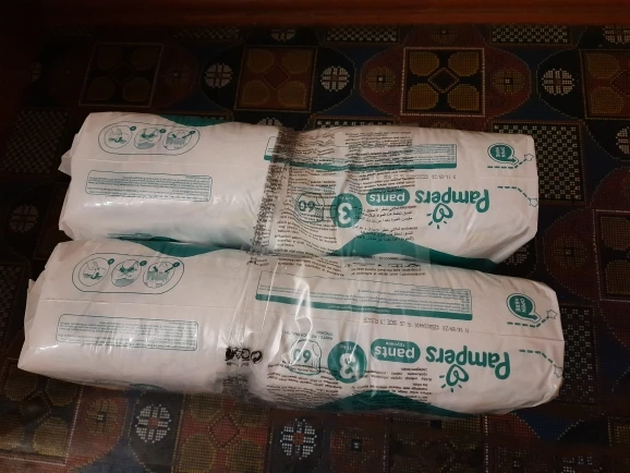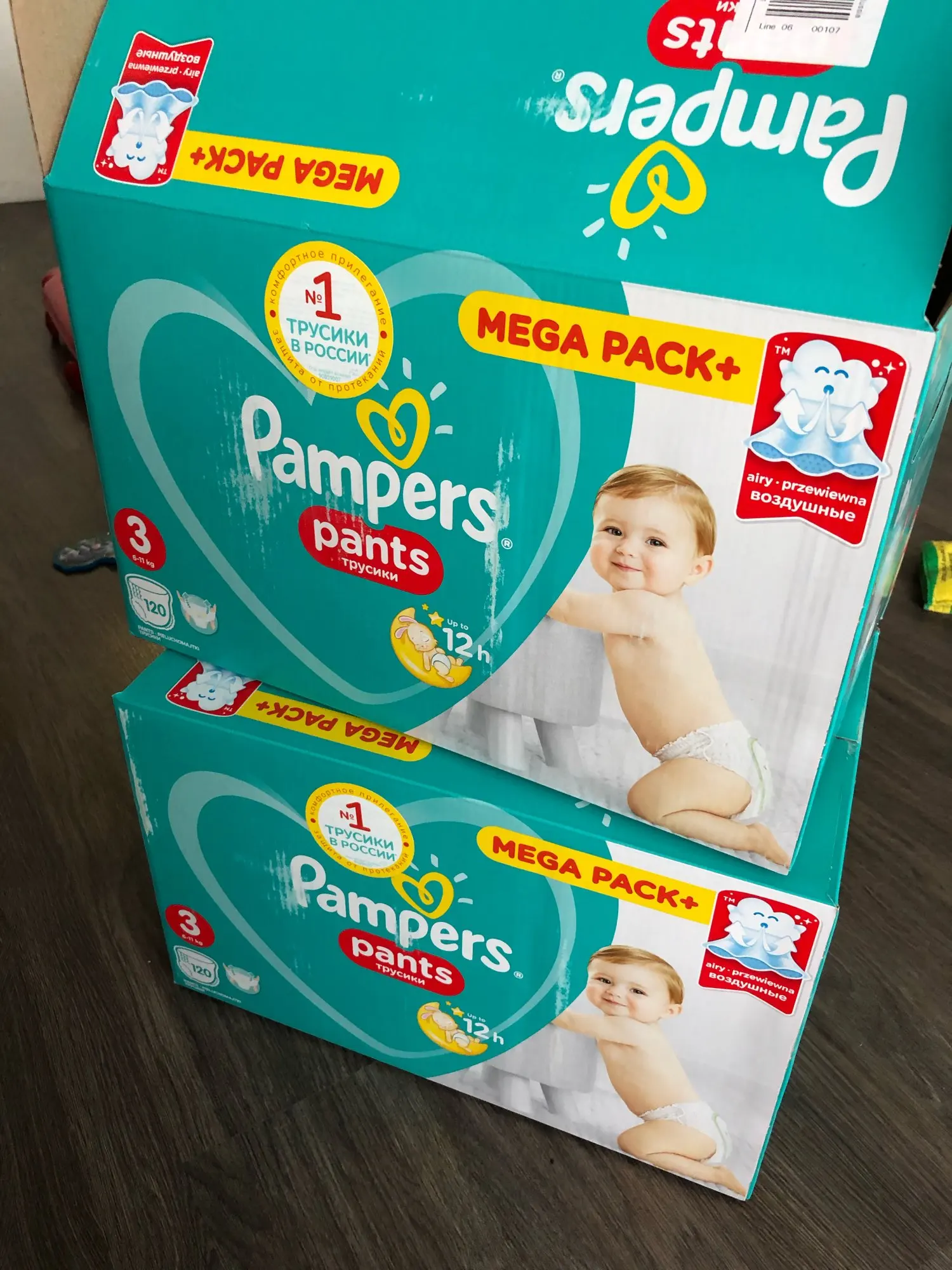 памперсы купила за 899 с купоном, вышло очень очень выгодно, хотя я не очень люблю эту фирму, но жадность взяла верх, доставили за 4 дня, курьер привёз домой, предварительно позвонив. Теперь о памперсах плюсы: 1.хорошая резинка, сильно не давит на кожу 2. трусики на много лучше обычных памперсов этой фирмы, почти не протекают 3. можно легко снять разорвав по бокам 4. есть липучка для более удобной утилизации 5. и конечно приятная цена минусы: 1. ночной тест драйв не выдержали, потекли, но днем носить отлично, меняю каждые 3-4часа (нам 3 месяца) 2. вонь, жуткая химозная вонь присутствовала когда я раскрыла коробку, пару дней на балконе решили эту проблему к заказу советую, скорее всего буду покупать еще