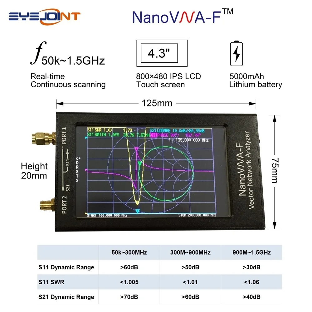 Векторный анализатор сети NanoVNA-F, измеритель КСВ 50 кгц-1.5 ГГц, 4,3 дюйма, IPS цифровой экран TFT, коротковолновый анализатор антенны MF HF VHF
