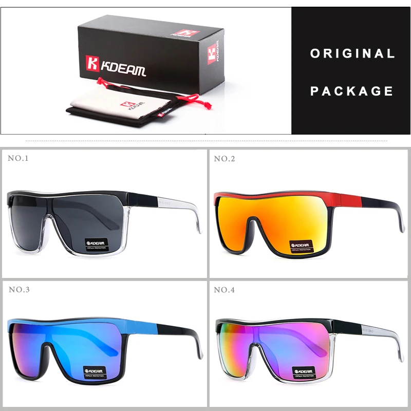 Мужские и женские ветрозащитные очки KDEAM, большие спортивные солнцезащитные очки с плоской оправой и защитой UV400, 4 цвета, с чехлом, KD802